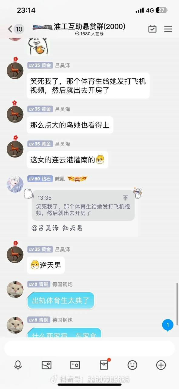 男主在外务工供女友上大学,女友胡文惠却出轨同校大四体育生孟熙 ,只因孟熙给她发了一则打飞机的视频,于是欣然前往酒店开房出轨!孟熙从此被人惯称 “飞机哥”。