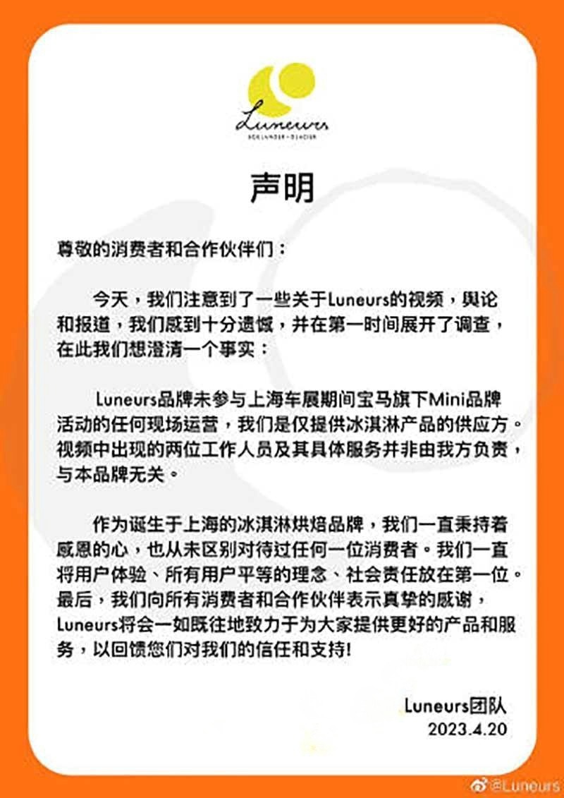 宝马冰淇淋热瓜 宝马mini车展冰淇淋只给老外吃 看看洋奴的恶心嘴脸